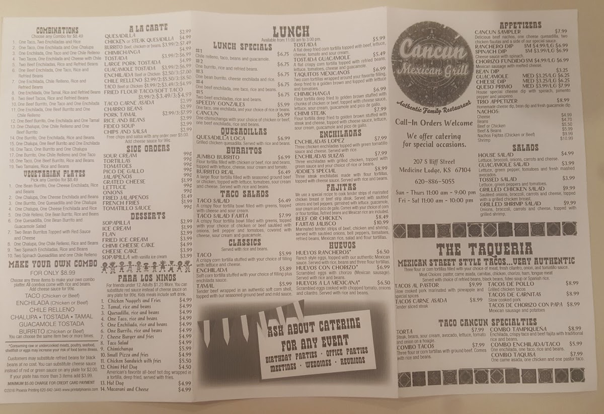 Cancun Mexican Grill - Medicine Lodge Menu